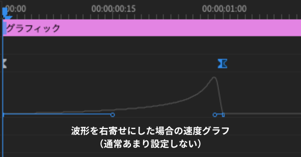 逆に波形を右寄せにすると終点に近づくほど速度が上がります。イーズアウトイーズイン正しい順番で設定していてもそれを覆すような動きになるため、推奨されない波形です。